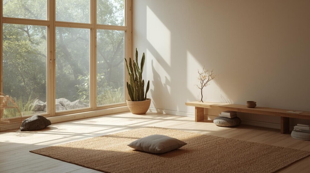You don’t need a big meditation room. Even a tiny corner sends a powerful message to the body: